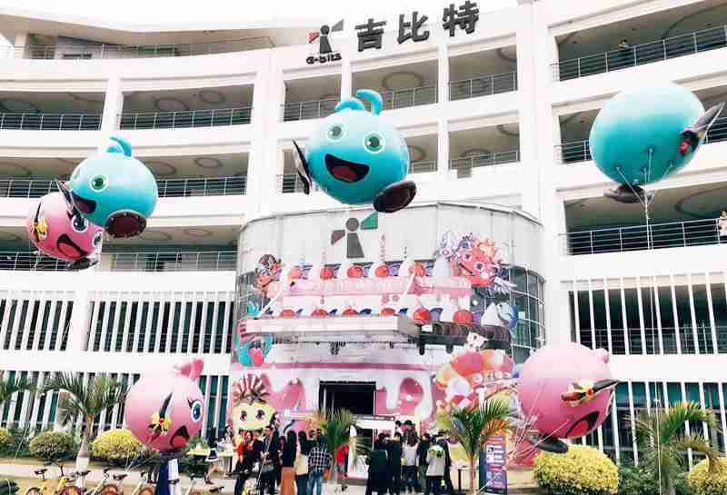 12月15日,,,为了庆祝《不思议迷宫》一周岁生日,,,冈布奥们准备了众多花式庆生活动::厦门亚星管理大楼变身巨型蛋糕、、、女仆小姐姐为大家奉上美味小蛋糕、、、更有大头冈布奥飞上天……引来不少冒险者身亲临现场为冈布奥打Call!!!